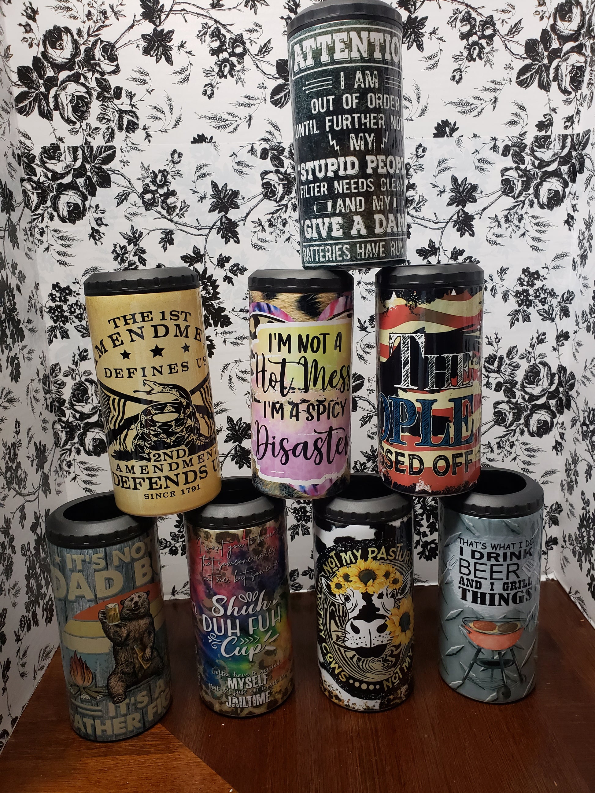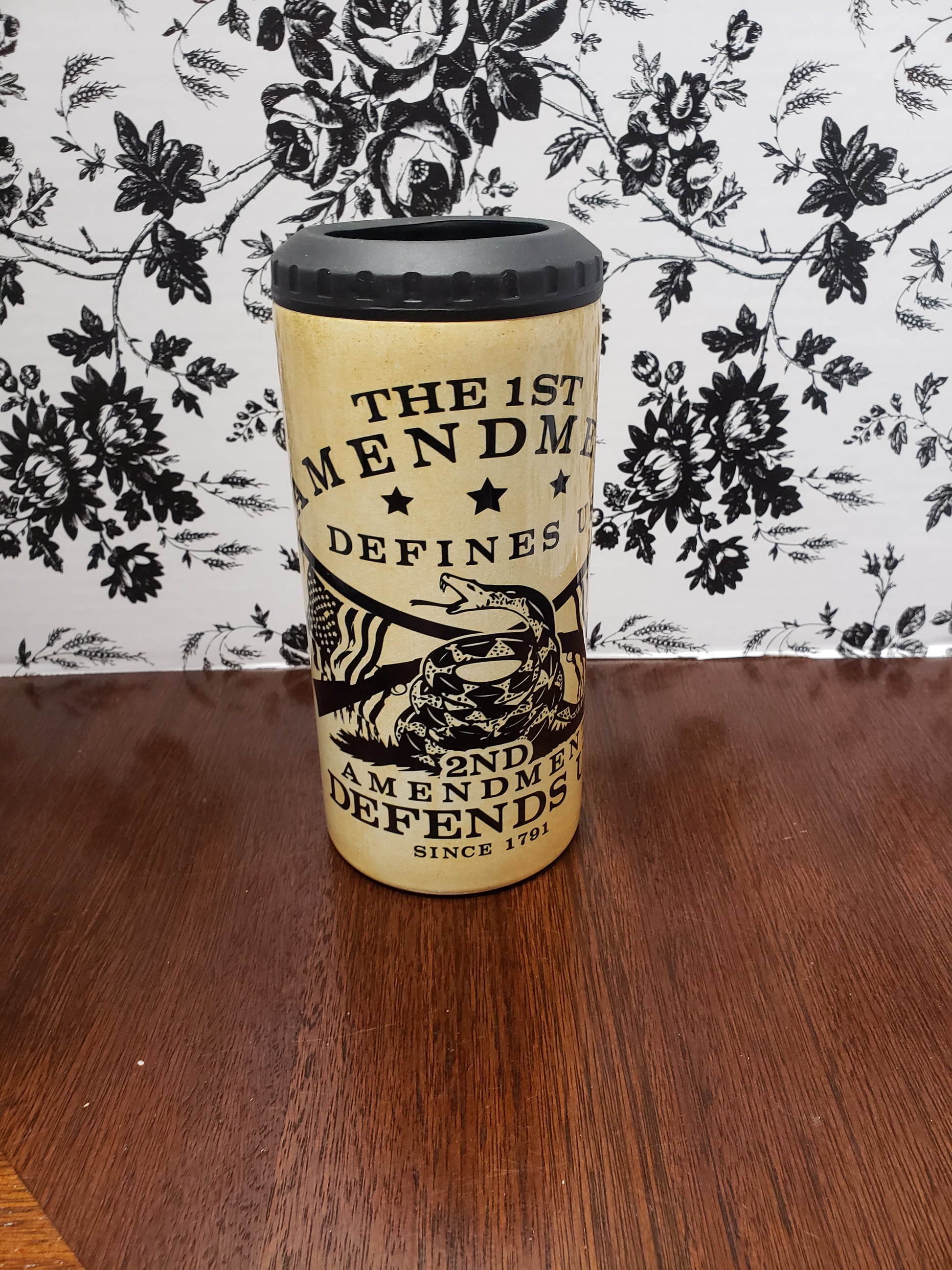 This hard can coolie will keep your canned beverages at the perfect temperature. It has a 16 oz capacity and a double lid to ensure freshness and to keep your beverage insulated. Enjoy your beverage with a 4 in 1 coolie that is sure to keep it at the ideal temperature.