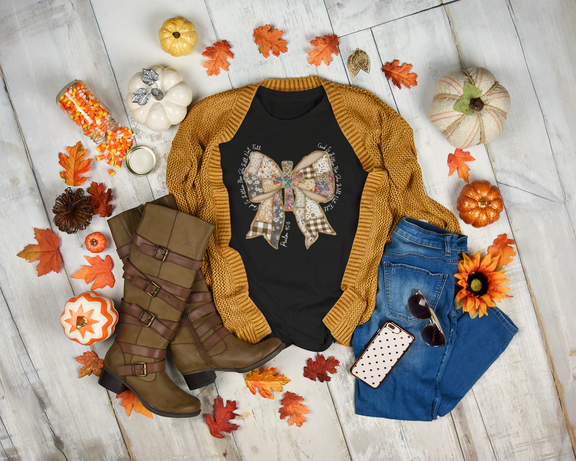 Celebrate faith and fall with the playful God is Within Her shirt, featuring a charming fall bow and an inspiring quote from Psalms 46:5. Soft and comfortable, this shirt beautifully combines seasonal style with a meaningful message, making it perfect for autumn days filled with warmth and joy.
