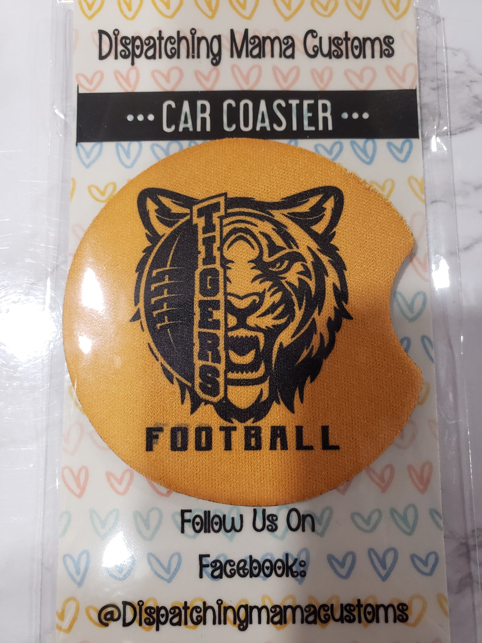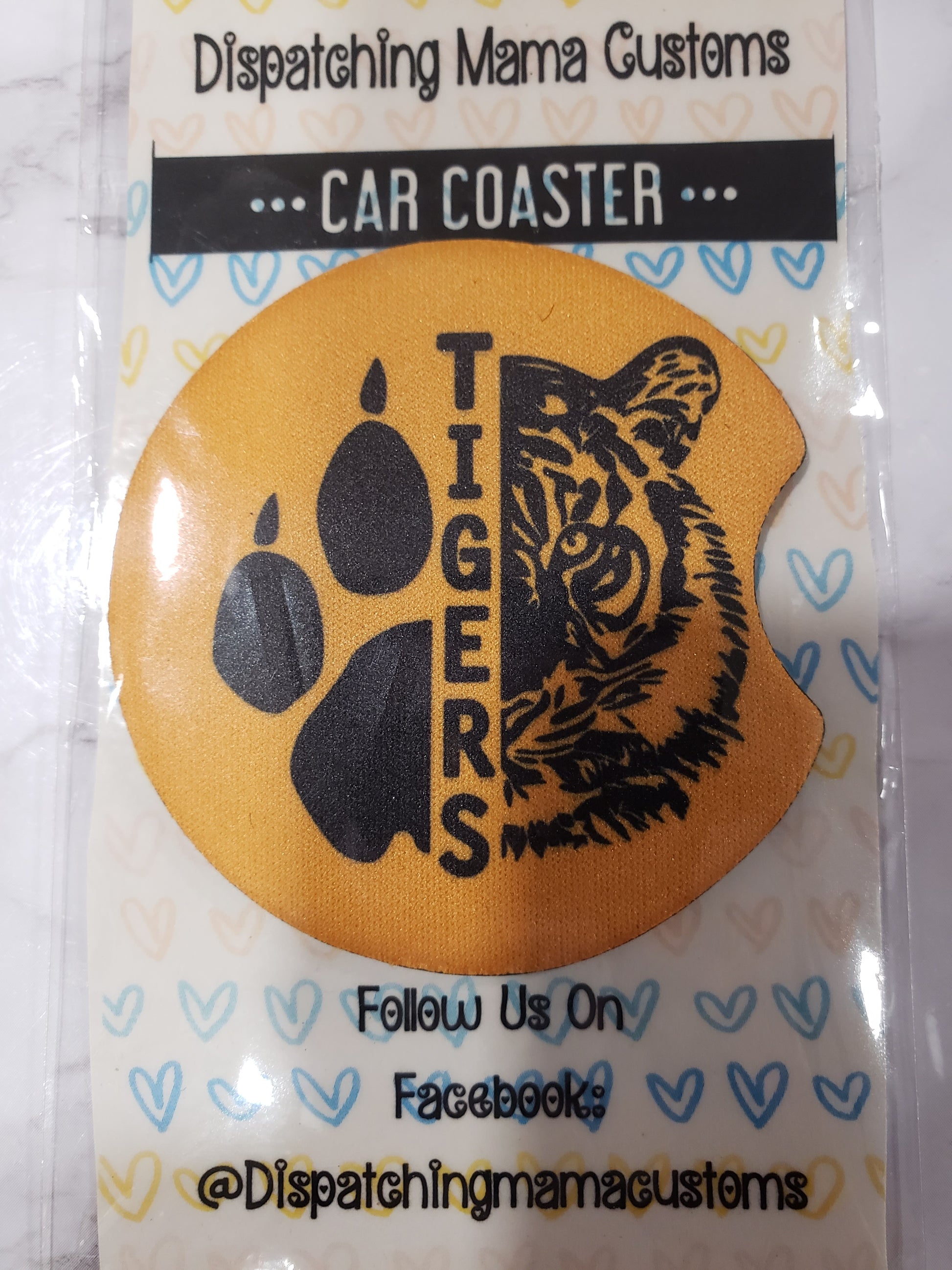 Show your love for our Harris County Tigers with these neoprene car coasters, and keep those cup holders clean.