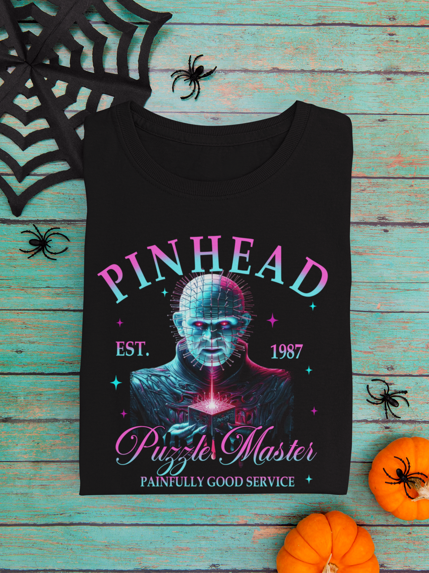Step into a playful night of spooky fun with the Puzzle Master shirt. Featuring an iconic character glowing in neon, this tee brings a vibrant twist to classic Halloween vibes. Perfect for those who love to mix a little eerie with a lot of style and personality. Get ready to turn heads and spark smiles wherever you go!