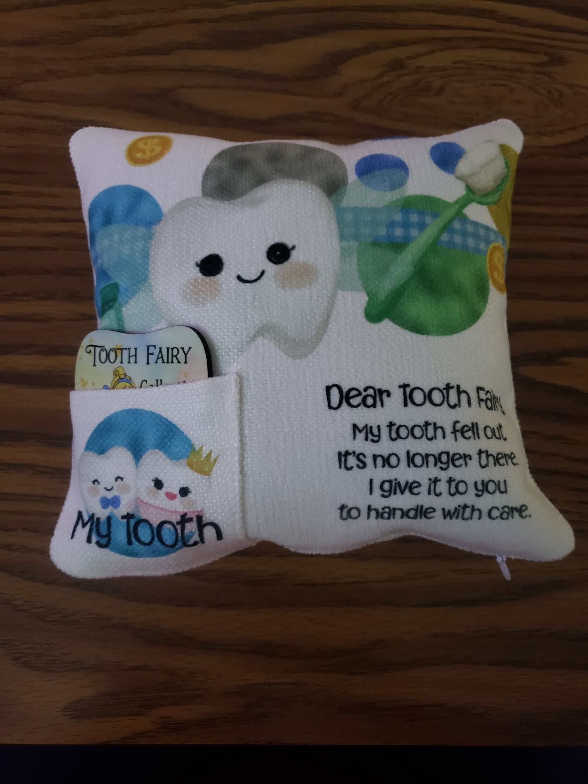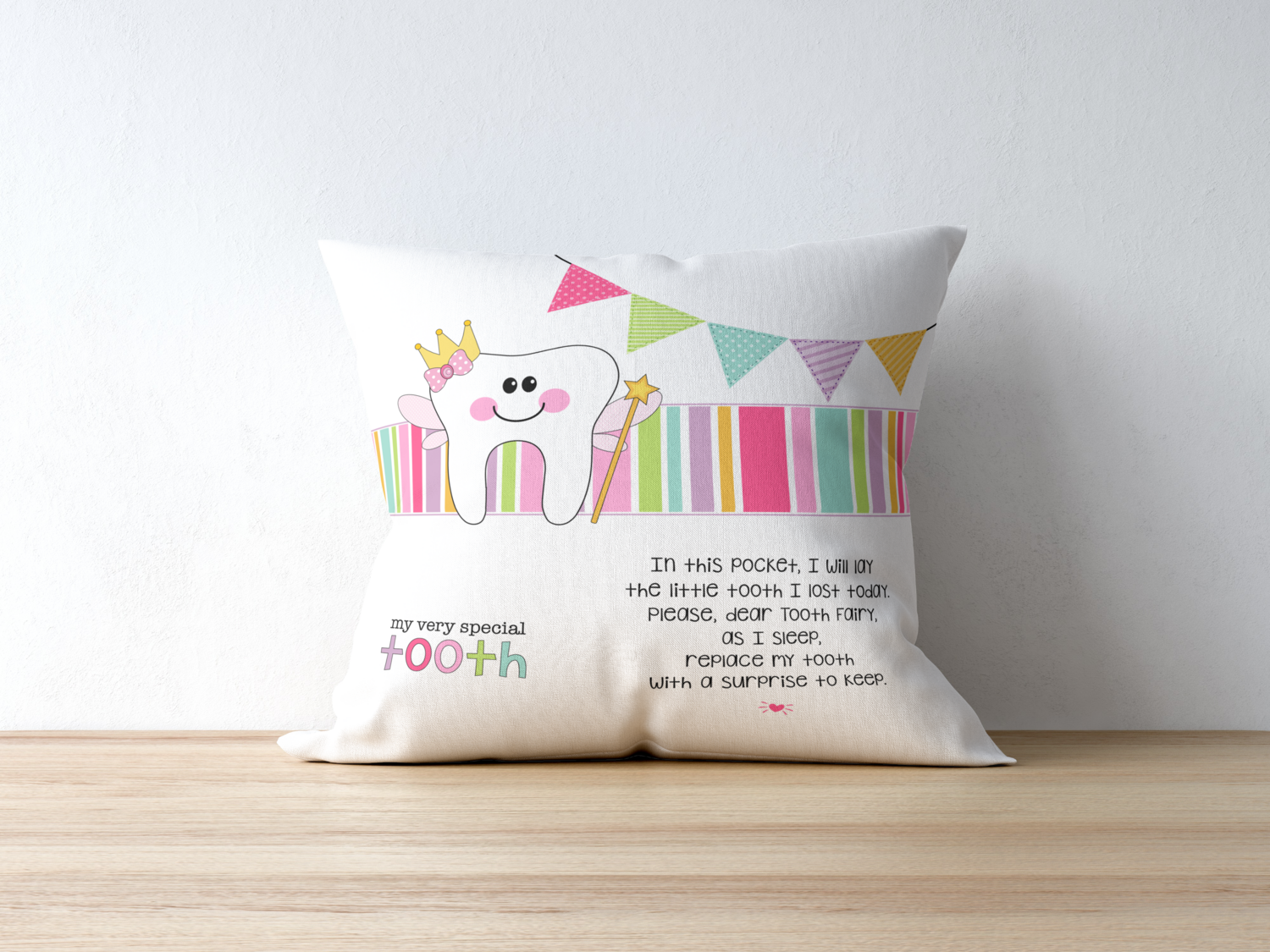 A Tooth Fairy Pillow is the perfect way to make losing a tooth more special and fun. This pillow is designed with a pocket for the lost tooth and a card with a note from the Tooth Fairy. Make every tooth fairy visit memorable with this special gift.